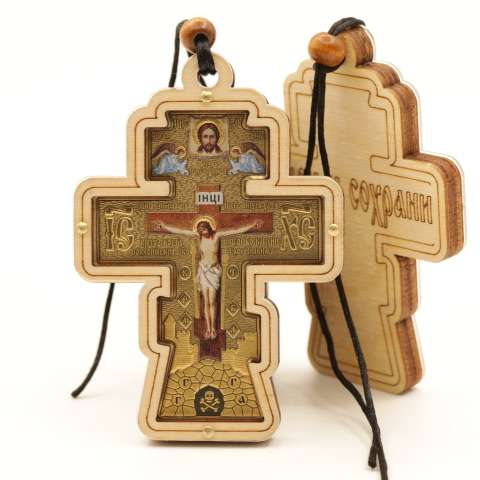 Авто ПОДВЕСКА (ERM) КРЕСТ фигурный, 8,5х6см, ЗОЛОТО купить оптом от производителя