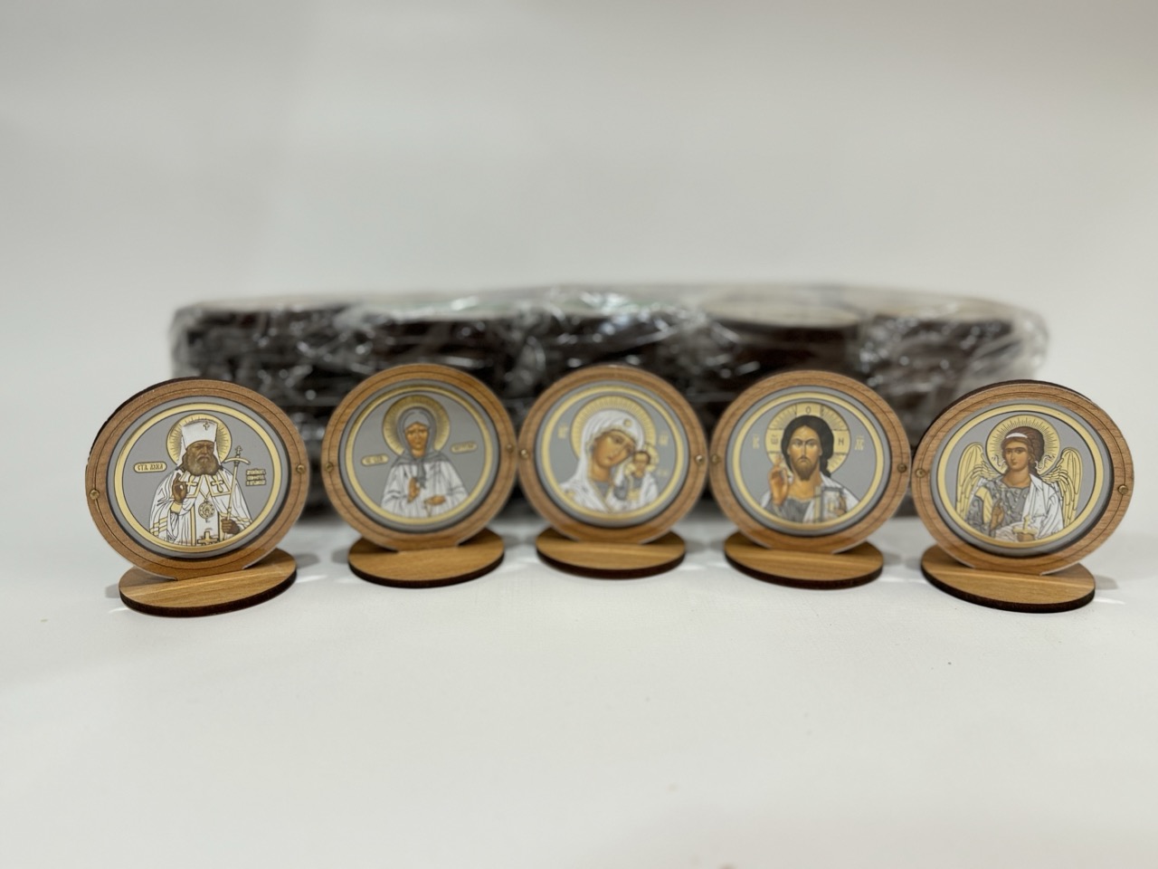 Авто ИКОНА (IMP) КРУГ на подставке, ассорти СЕРЕБРО, уп 50шт купить оптом от производителя