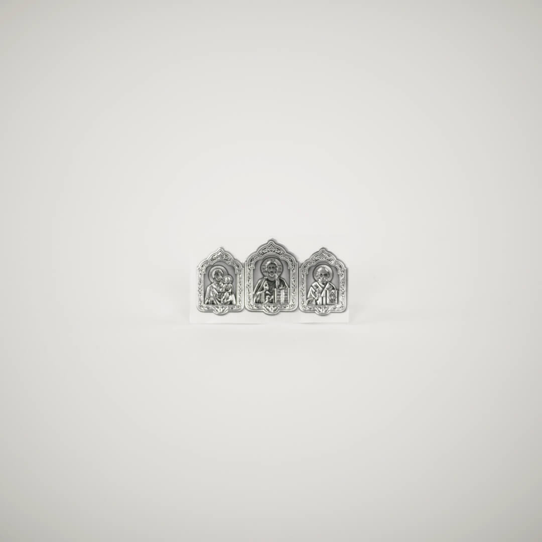 Икона Автомобильная Самокл. Металл, Триптих монохром Серебро купить оптом от производителя