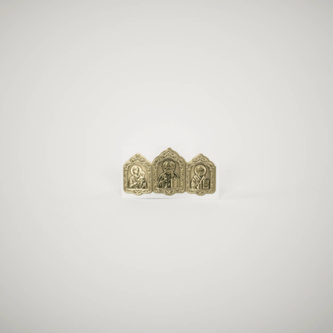 Икона Автомобильная Самокл. Металл, Триптих монохром Золото купить оптом от производителя