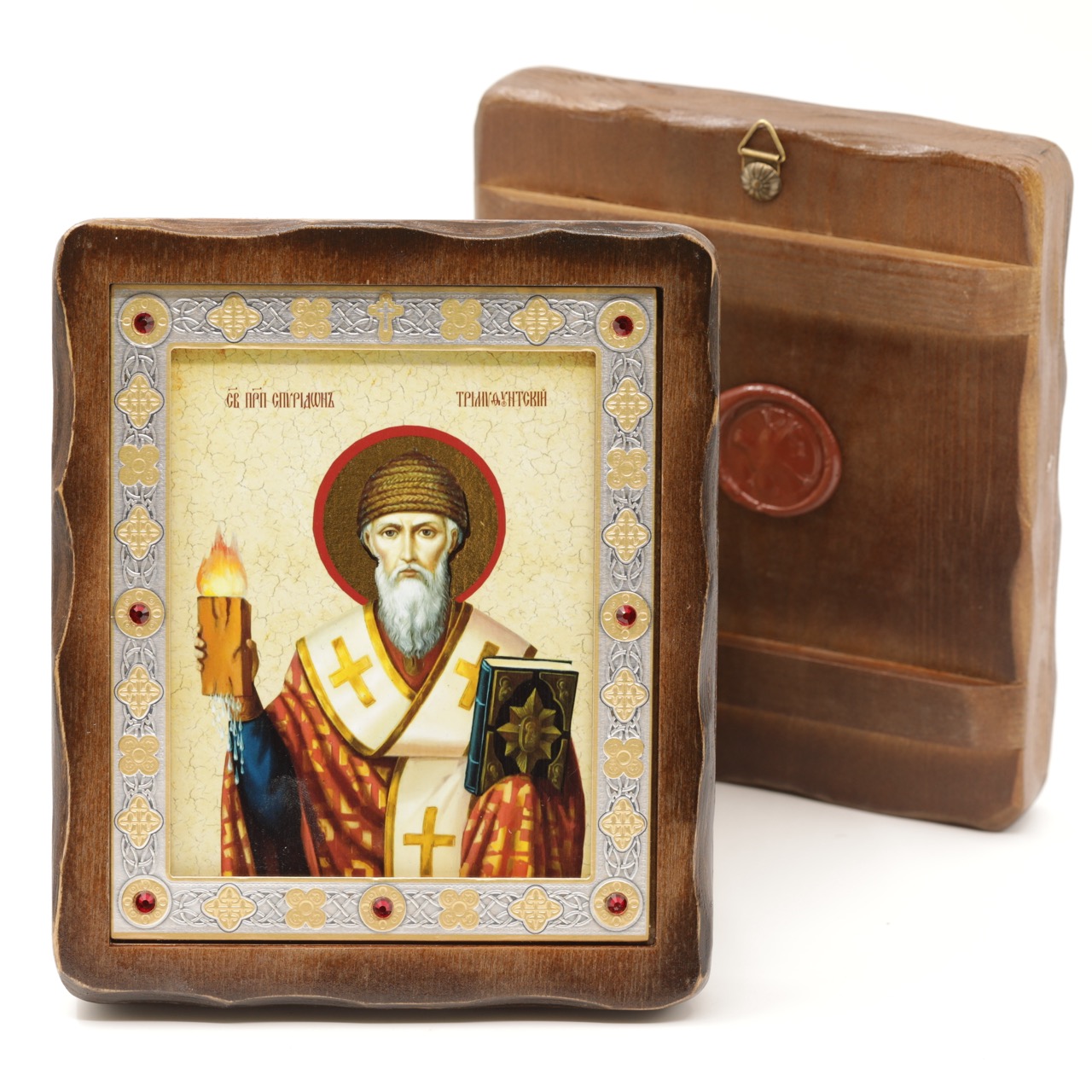 Икона 11х13 (ERM) деревянная под старину ВИЗАНТИКОС, Спиридон Тримифунтский (поясн) купить оптом от производителя