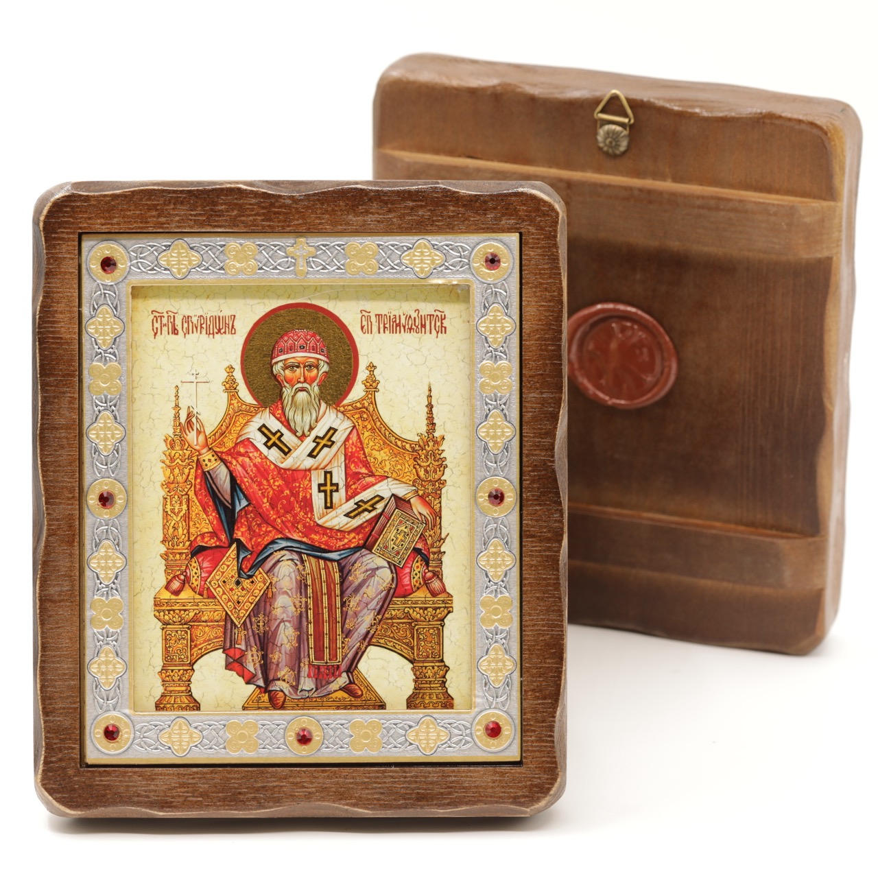 Икона 11х13 (ERM) деревянная под старину ВИЗАНТИКОС, Спиридон Тримифунтский (на троне) купить оптом от производителя
