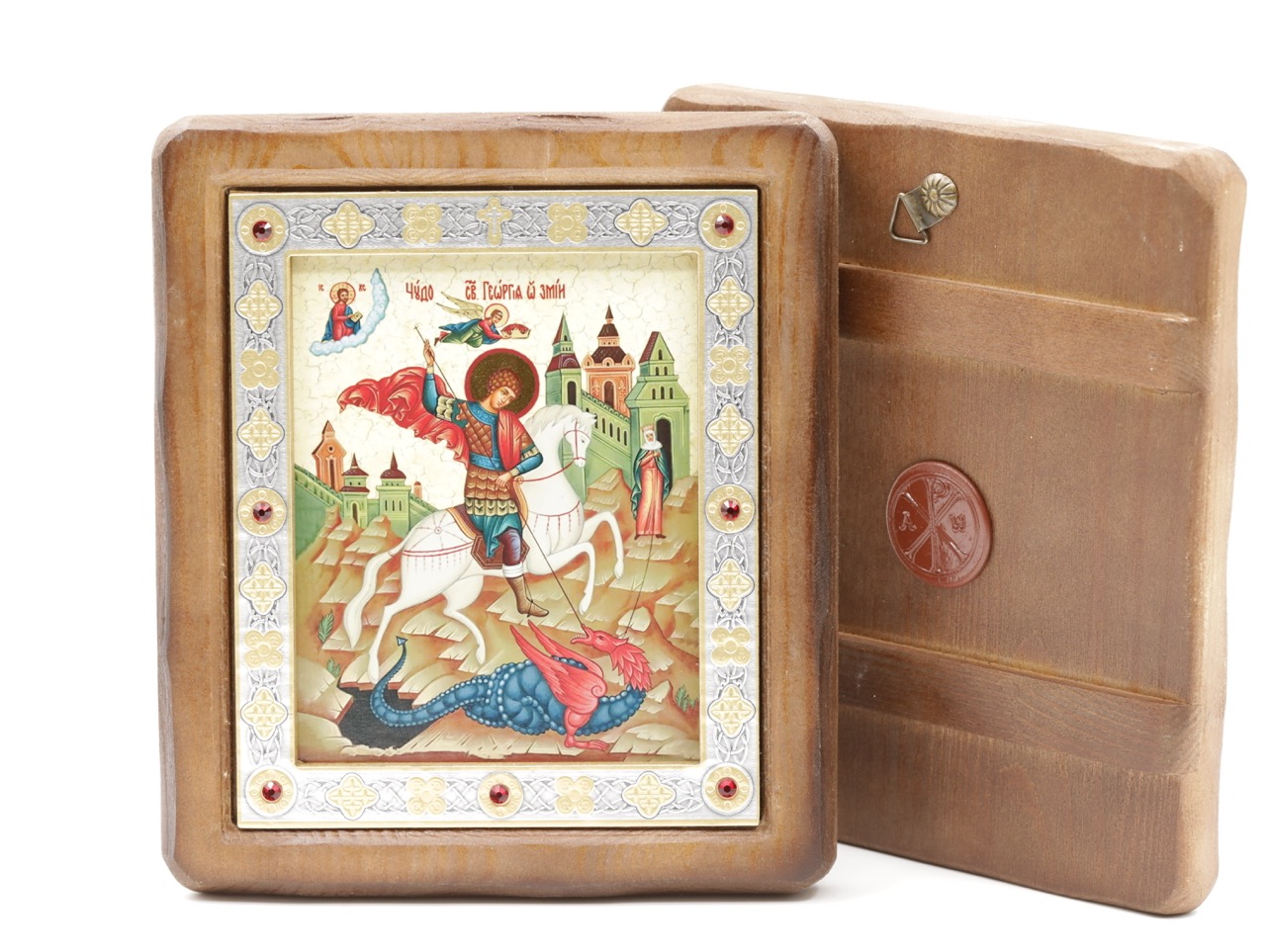 Икона 11х13 (ERM) деревянная под старину ВИЗАНТИКОС, Георгий Победоносец (Чудо о змие) купить оптом от производителя