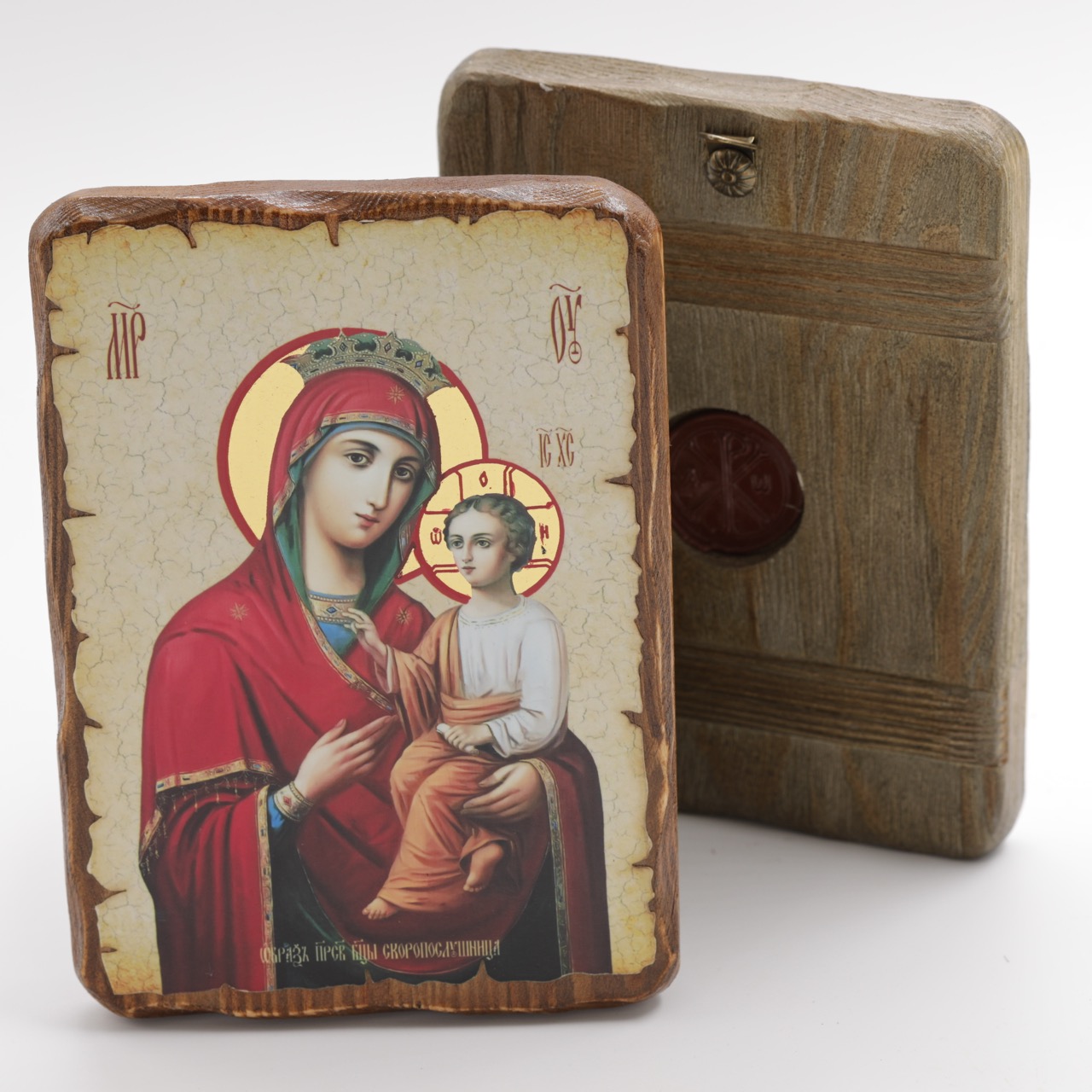 Икона 13x17 (ERM) деревянная под старину, Скоропослушница купить оптом от производителя