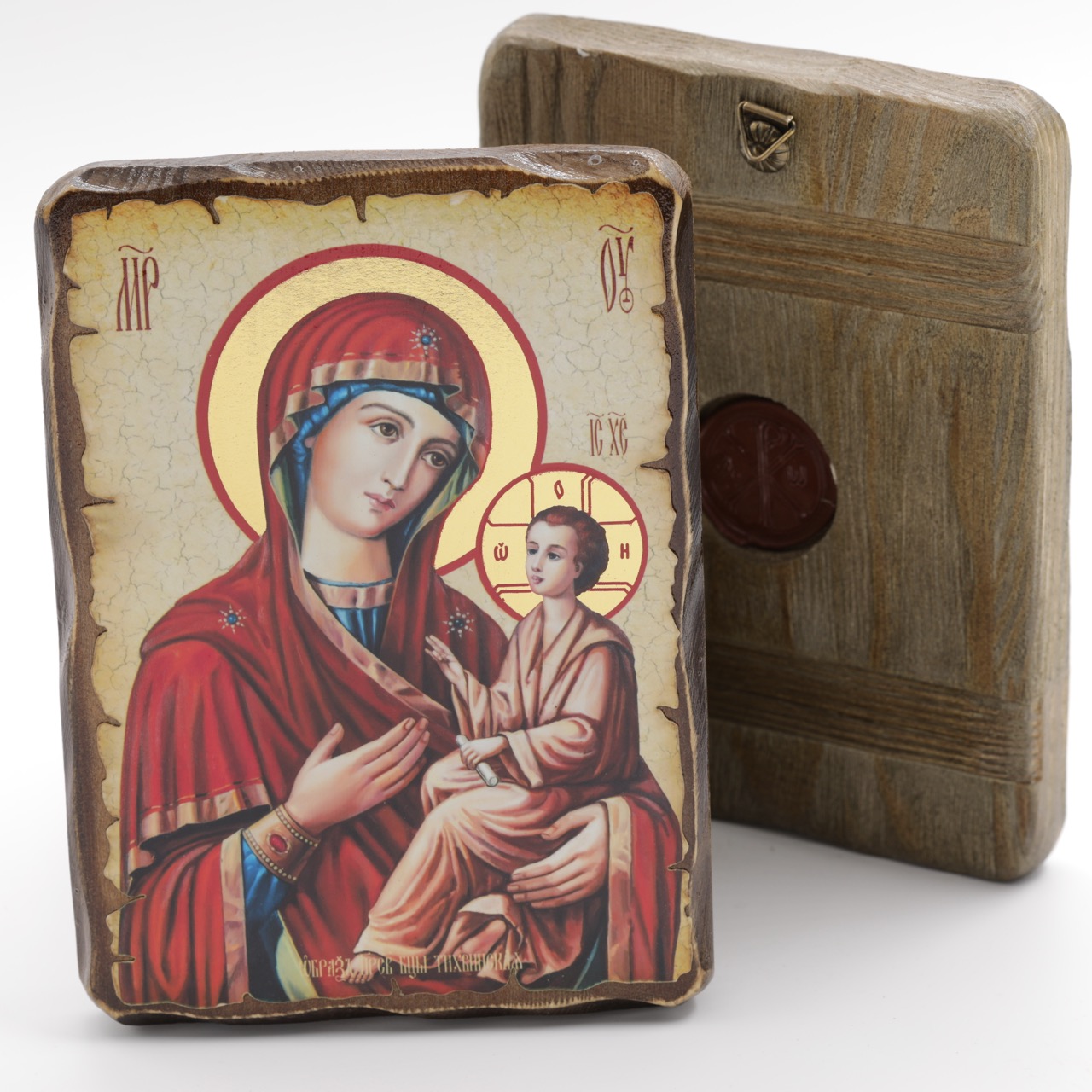 Икона 13x17 (ERM) деревянная под старину, Тихвинская купить оптом от производителя