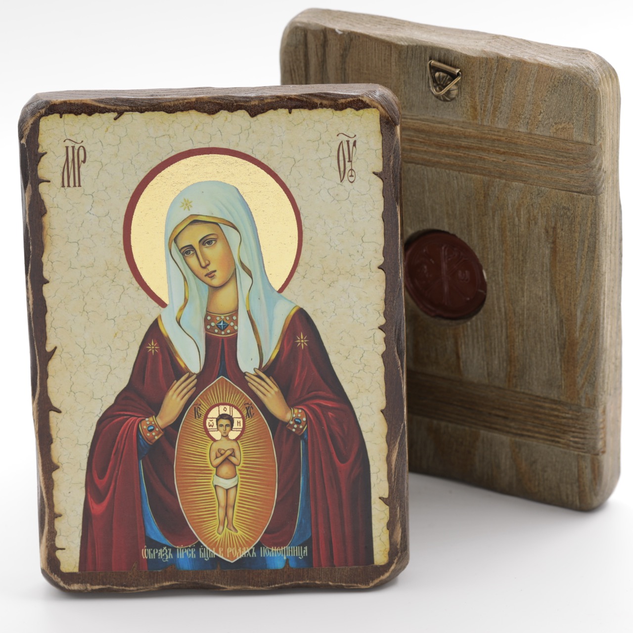 Икона 13x17 (ERM) деревянная под старину, Помощница в родах купить оптом от производителя