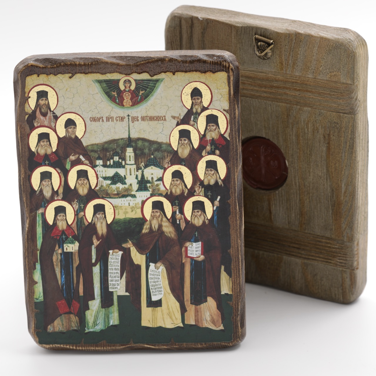 Икона 13x17 (ERM) деревянная под старину, Оптинские Старцы купить оптом от производителя