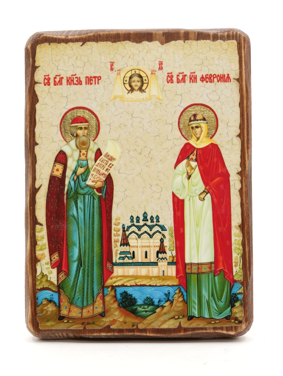 Икона 13x17 (ERM) деревянная под старину, Петр и Феврония (рост) 3 купить оптом от производителя