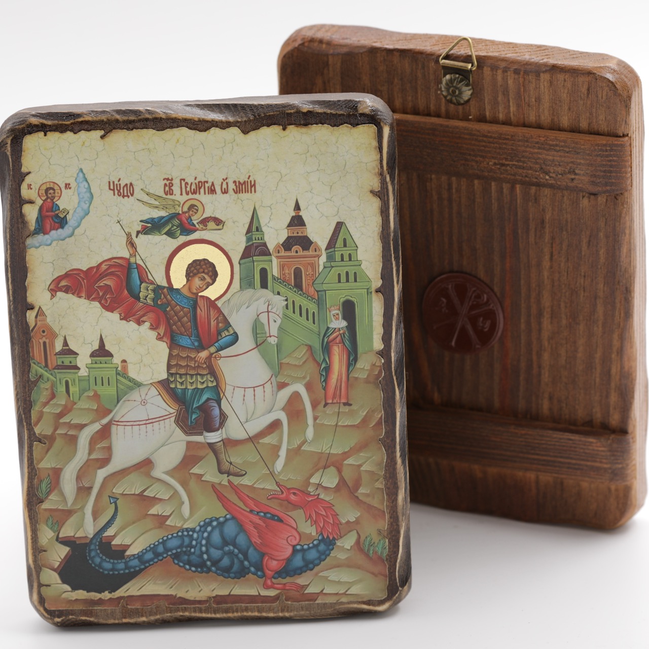 Икона 13x17 (ERM) деревянная под старину, Георгий Победоносец (Чудо) купить оптом от производителя