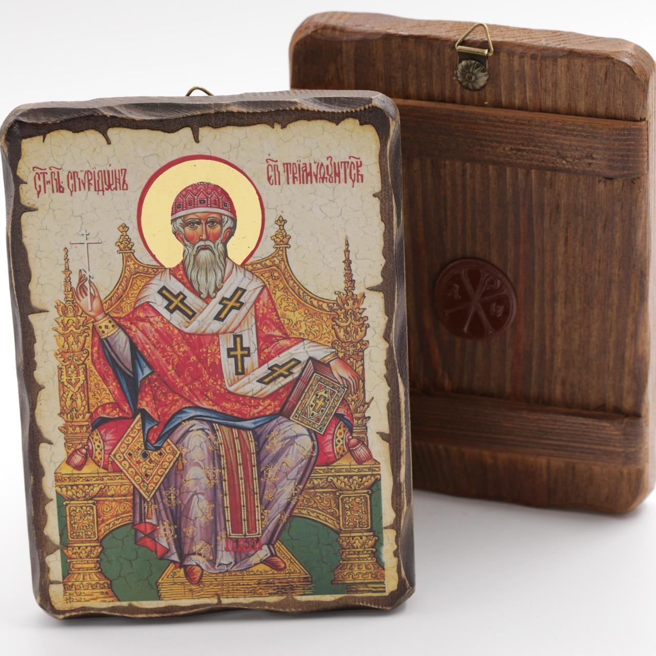 Икона 13x17 (ERM) деревянная под старину, Спиридон (на троне) купить оптом от производителя