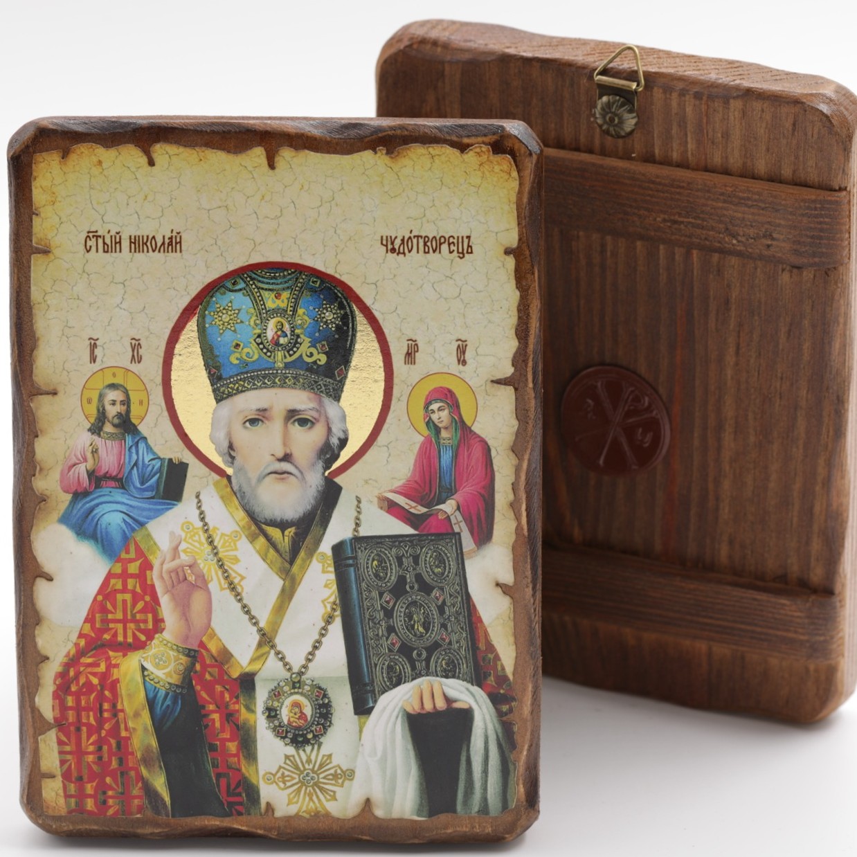 Икона 13x17 (ERM) деревянная под старину, Николай Чудотворец (в голубой митре) купить оптом от производителя