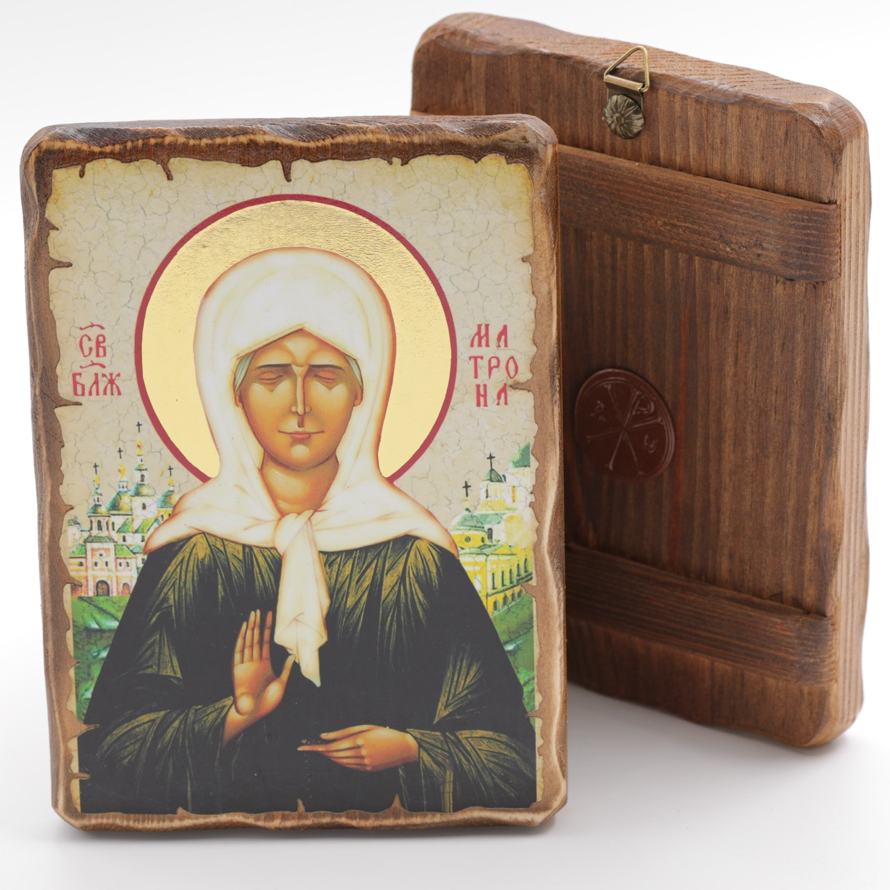 Икона 13x17 (ERM) деревянная под старину, Матрона Московская купить оптом от производителя