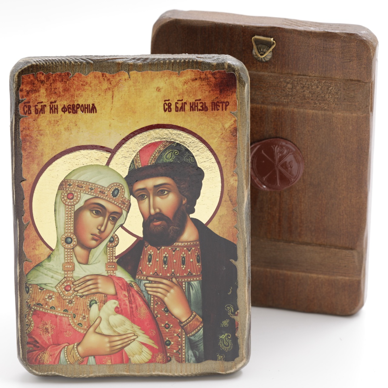 Икона 13х17 (ERM) деревянная под старину с ОБЖИГОМ, Петр и Феврония (поясн) купить оптом от производителя