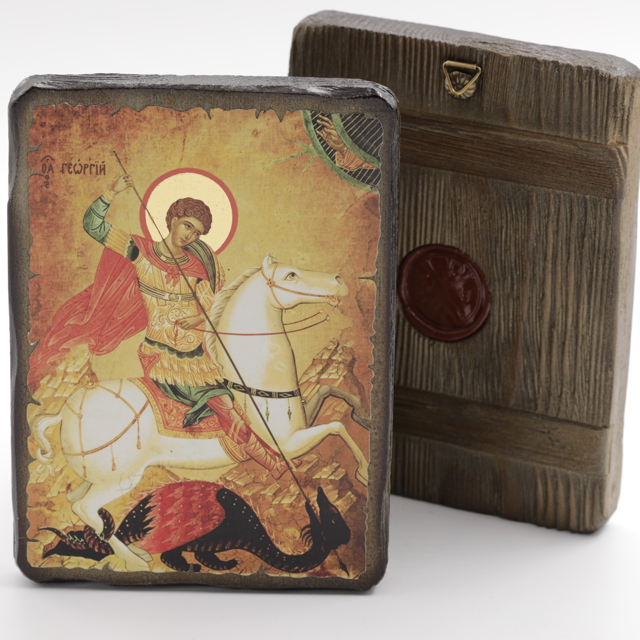 Икона 13х17 (ERM) деревянная под старину с ОБЖИГОМ, Георгий Победоносец купить оптом от производителя