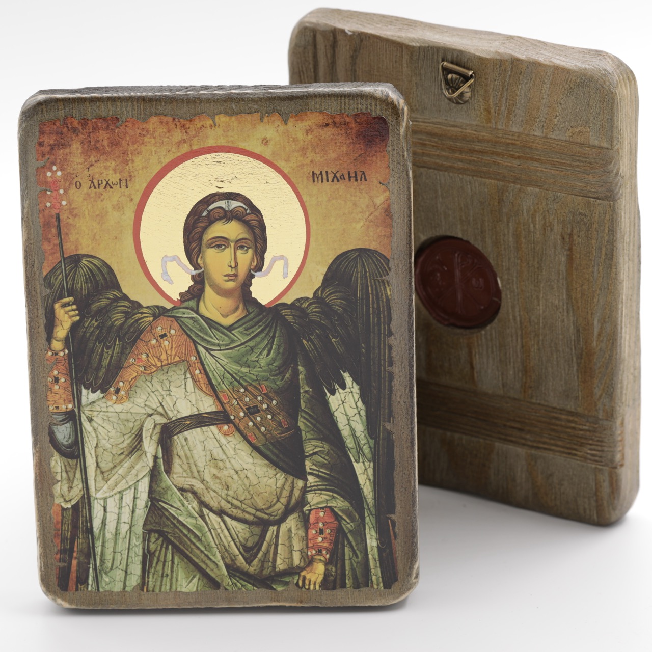 Икона 13х17 (ERM) деревянная под старину с ОБЖИГОМ, Архангел Михаил (поясн) купить оптом от производителя