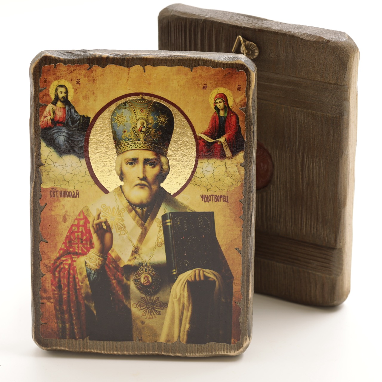 Икона 13х17 (ERM) деревянная под старину с ОБЖИГОМ, Николай Чудотворец купить оптом от производителя