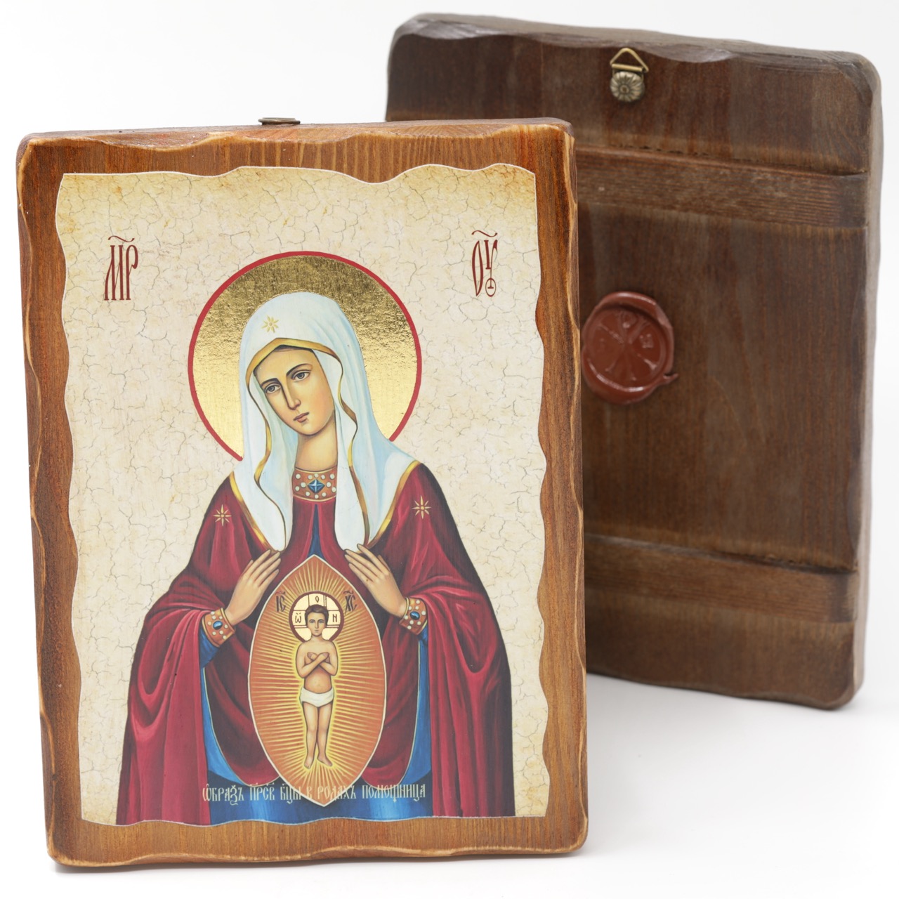 Икона 17x23 (ERM) деревянная под старину, Помощница в родах купить оптом от производителя