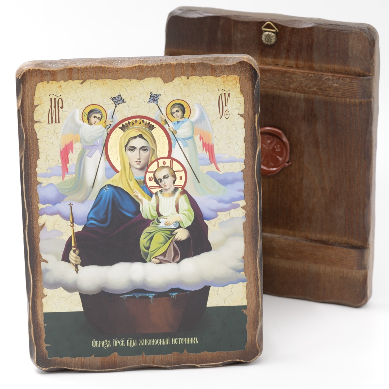 Икона 17x23 (ERM) деревянная под старину, Живоносный источник купить оптом от производителя