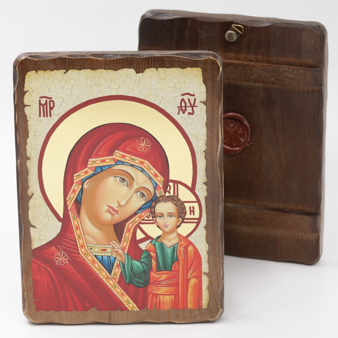 Икона 17x23 (ERM) деревянная под старину, №1 Казанская купить оптом от производителя