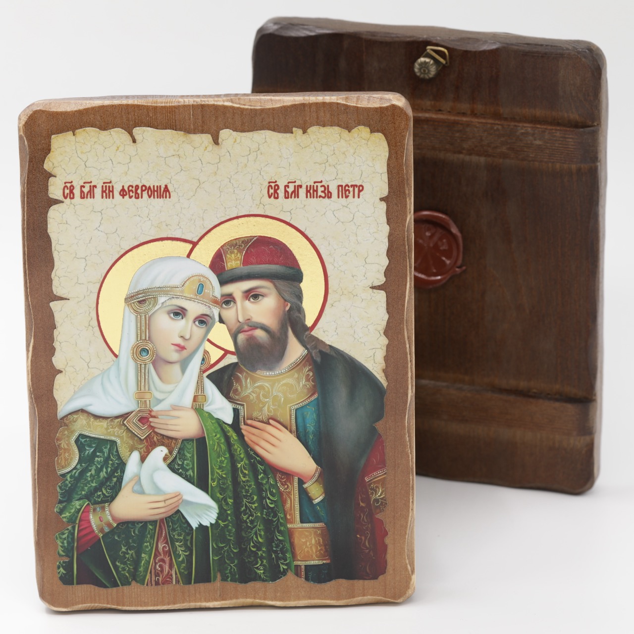 Икона 17x23 (ERM) деревянная под старину, Петр и Феврония (светл) купить оптом от производителя