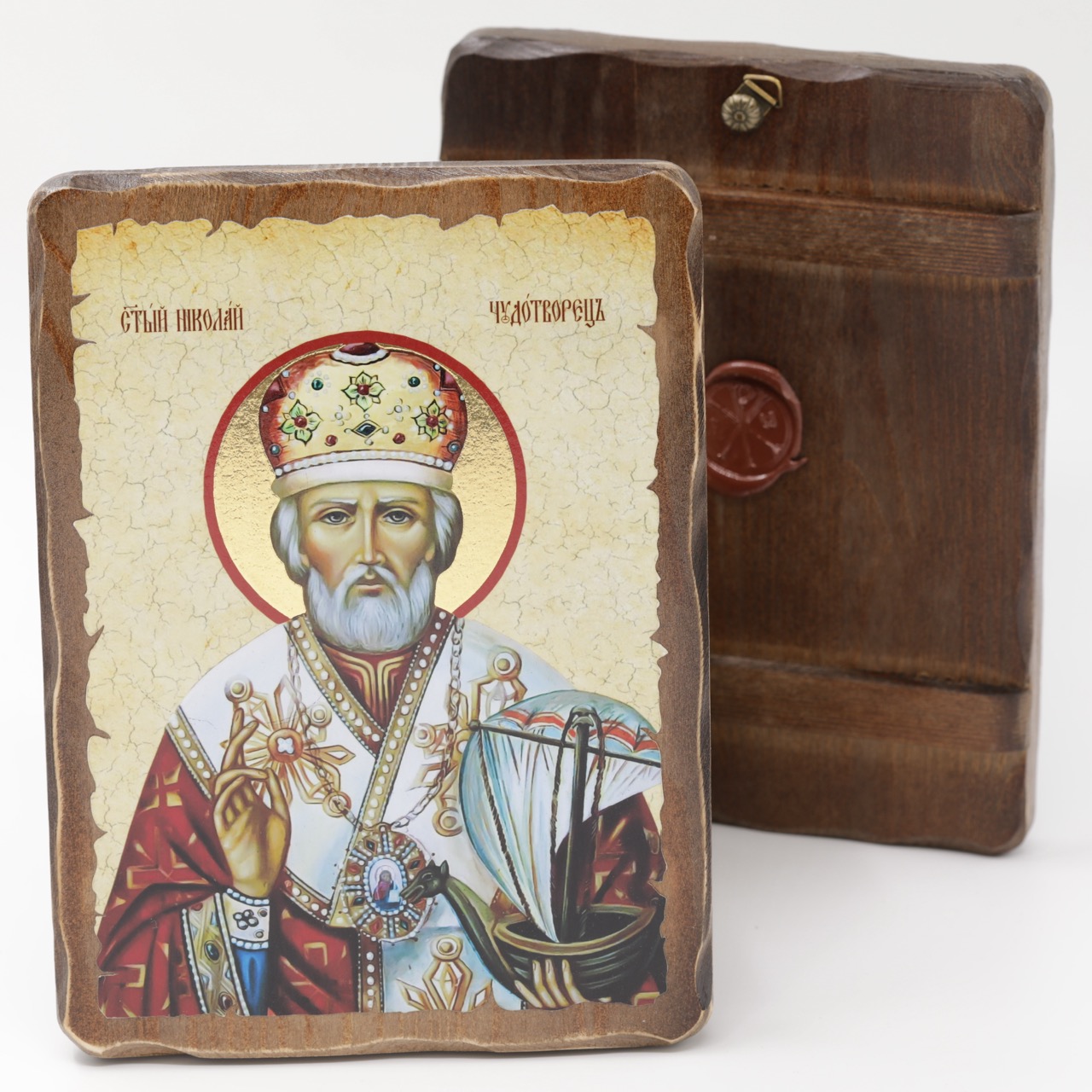 Икона 17x23 (ERM) деревянная под старину, Николай Чудотворец купить оптом от производителя