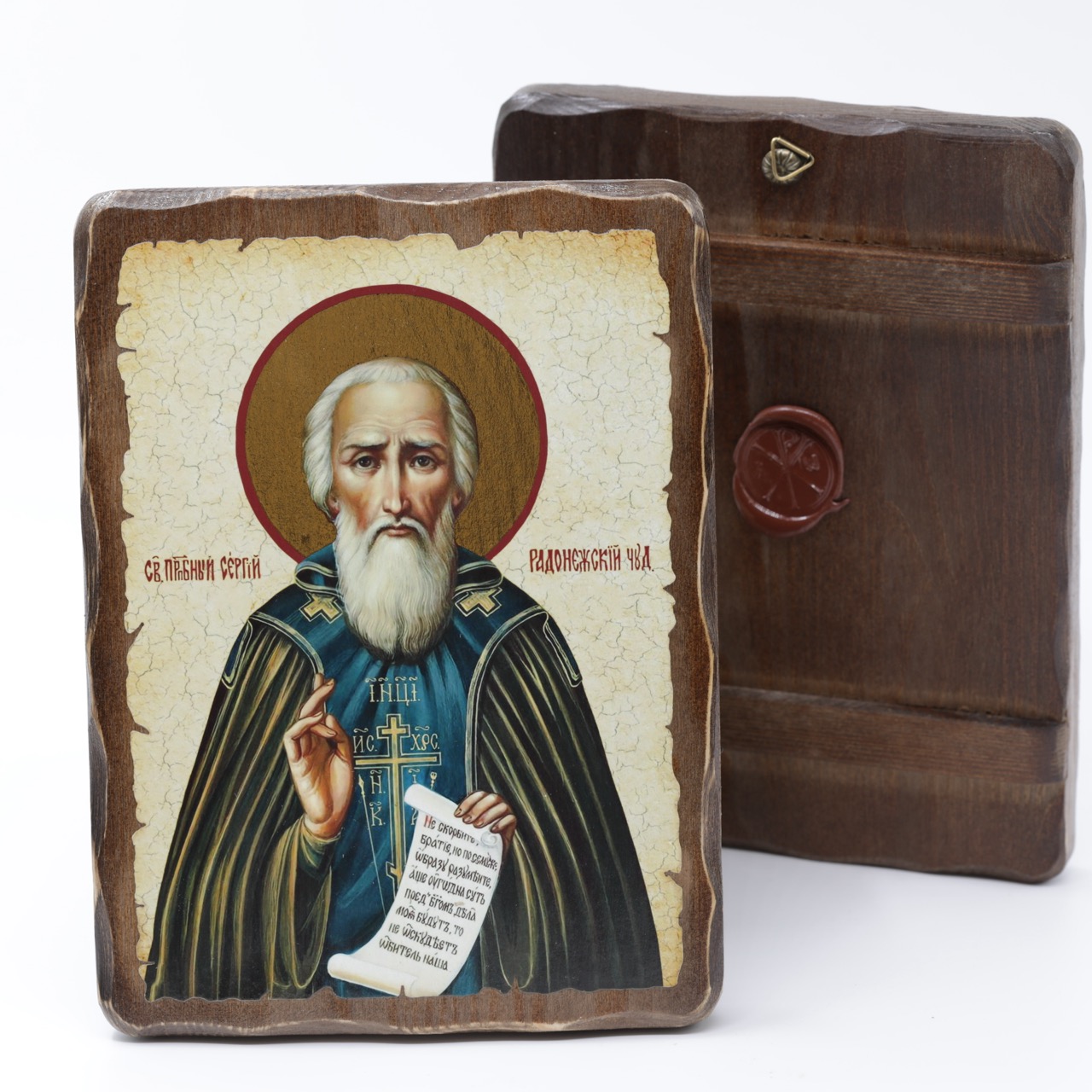 Икона 17x23 (ERM) деревянная под старину, Сергий Радонежский купить оптом от производителя