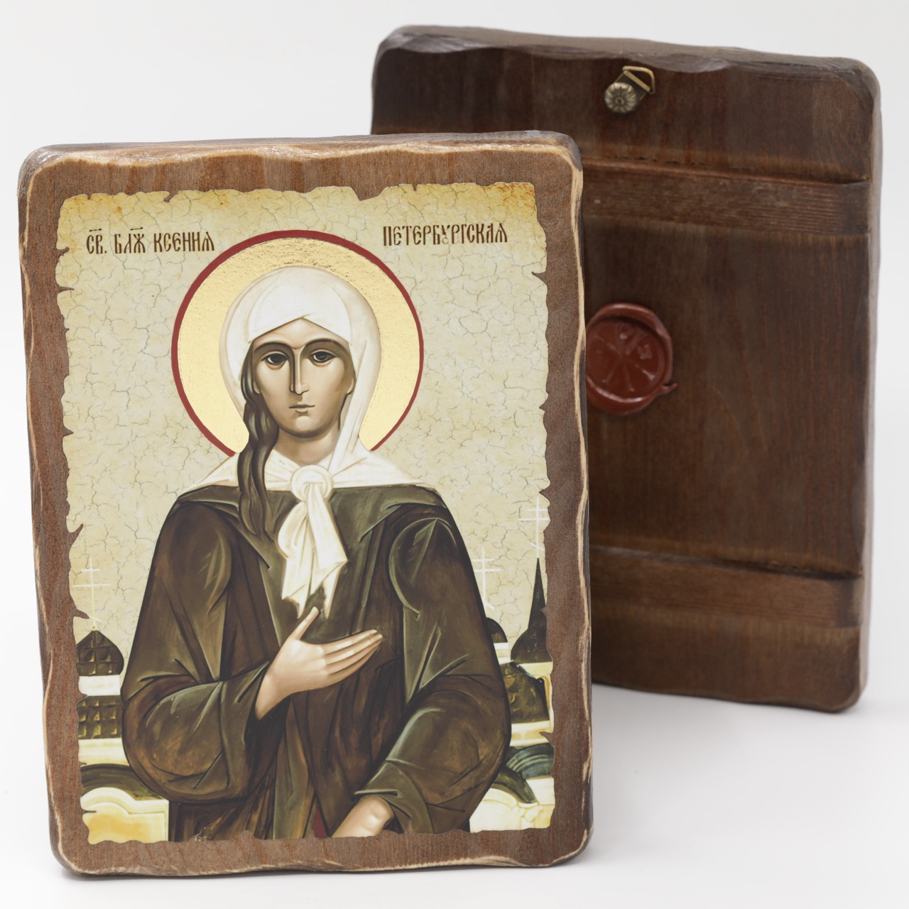 Икона 17x23 (ERM) деревянная под старину, Ксения Петербургская (поясн) купить оптом от производителя