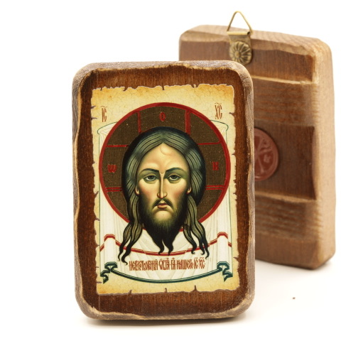 Икона 7х10 (ERM) деревянная под старину, Спаситель Нерукотворный купить оптом от производителя