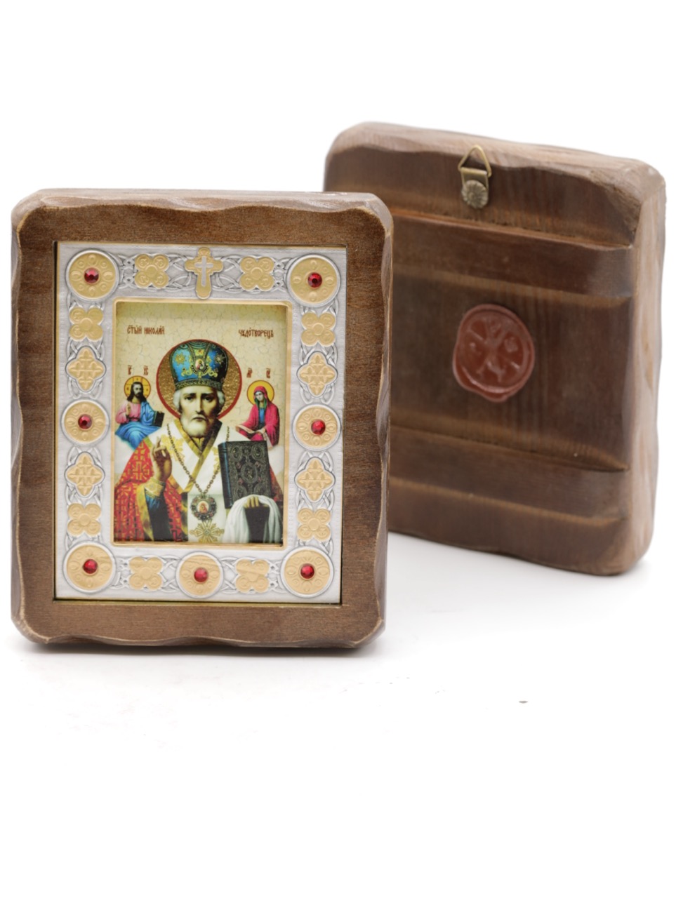 Икона 7х10 (ERM) деревянная под старину ВИЗАНТИКОС, Николай Чудотворец (в голубой митре) купить оптом от производителя