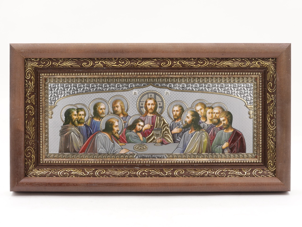 КИОТ под лик 30х12см (ERM) ТЕМНОЕ дерево, ЗОЛОТОЙ багет, Тайная вечеря (серебро цвет) купить оптом от производителя