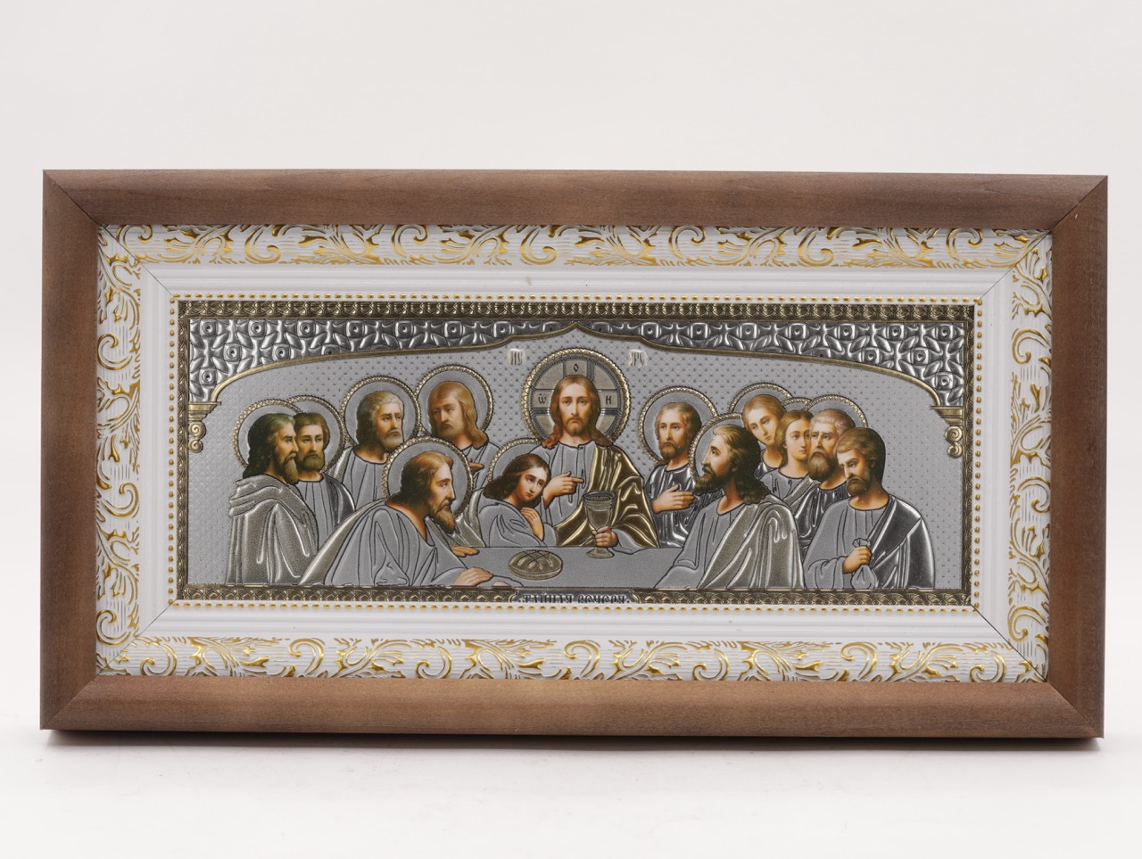 КИОТ под лик 30х12см (ERM) ТЕМНОЕ дерево, БЕЛЫЙ багет, Тайная вечеря (серебро) купить оптом от производителя