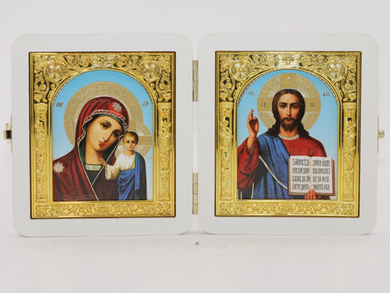 Складень (ERM) 10x12, БЕЛЫЙ золотая АРКА, Спаситель - Казанская (Академ, гол) купить оптом от производителя
