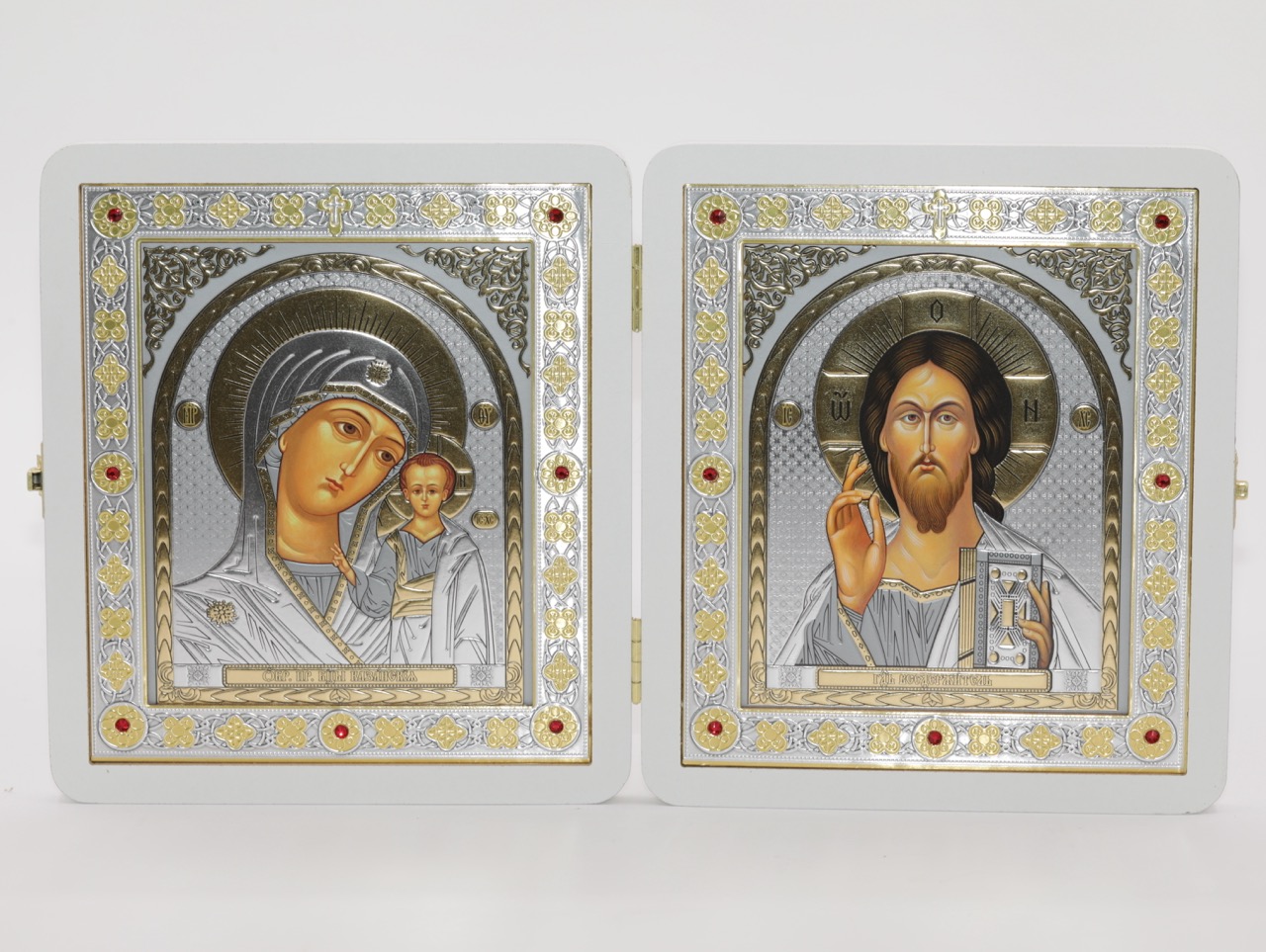 Складень (ERM) 15x18 БЕЛЫЙ вставка металл со стразами, Спаситель - Казанская №5 купить оптом от производителя