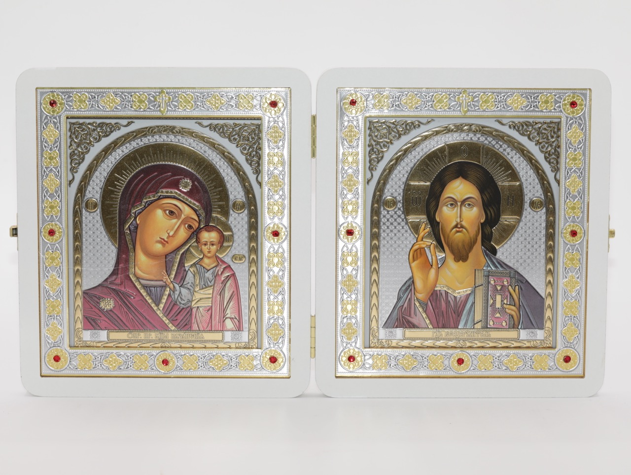 Складень (ERM) 15x18 БЕЛЫЙ вставка металл со стразами, Спаситель - Казанская №4 купить оптом от производителя