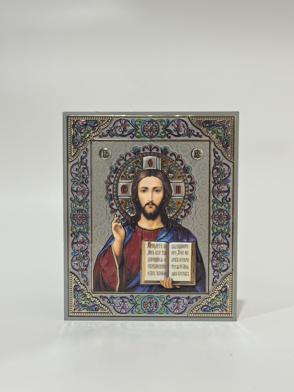 Лик полигр. 10х12, Серебро, оверпринт, цветы эмаль, Спаситель купить оптом от производителя