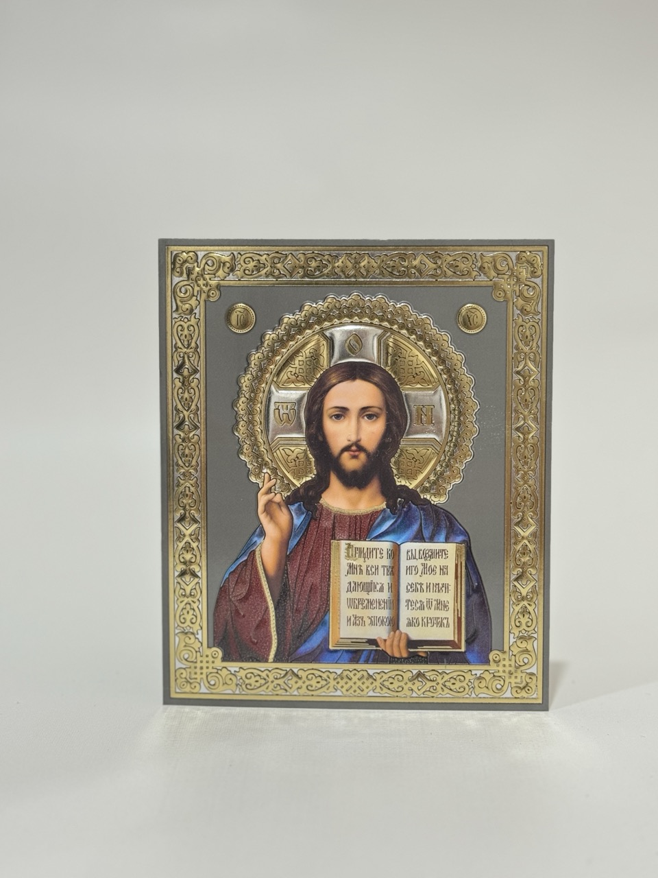 Лик полигр. 10х12, Серебро, оверпринт, прямая рамка, Спаситель купить оптом от производителя