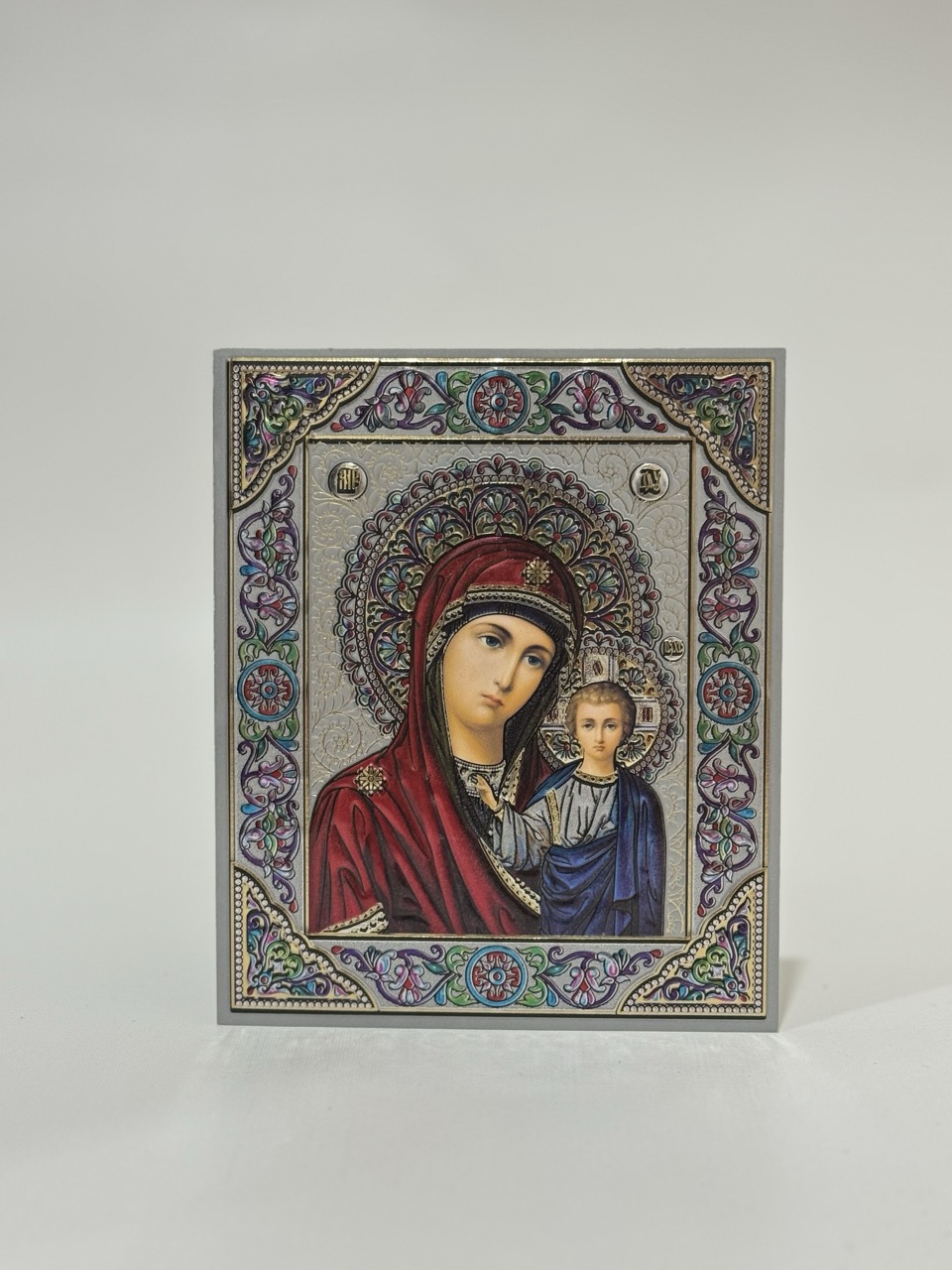 Лик полигр. 10х12, Серебро, оверпринт, цветы эмаль, Казанская купить оптом от производителя