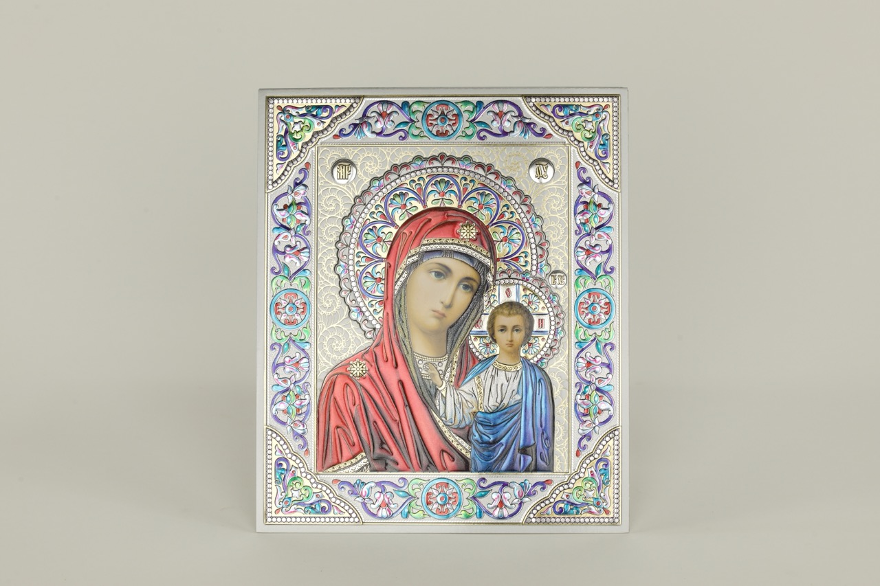 Лик полигр. 15х18, Серебро, оверпринт, цветы эмаль, Казанская купить оптом от производителя