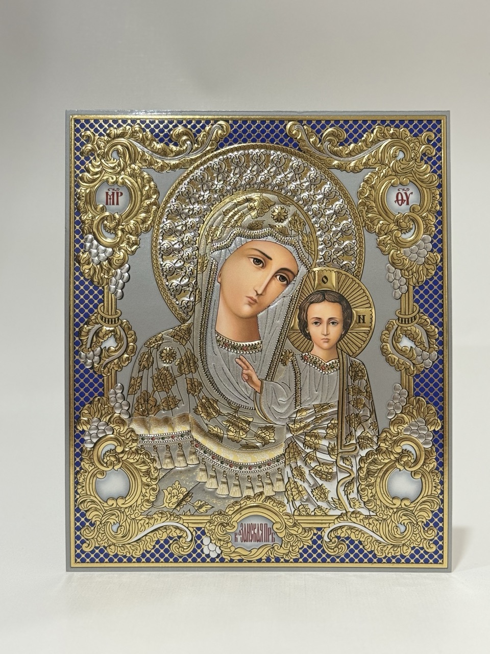 Лик полигр. 15х18, Серебро, Ажур синий, Казанская купить оптом от производителя