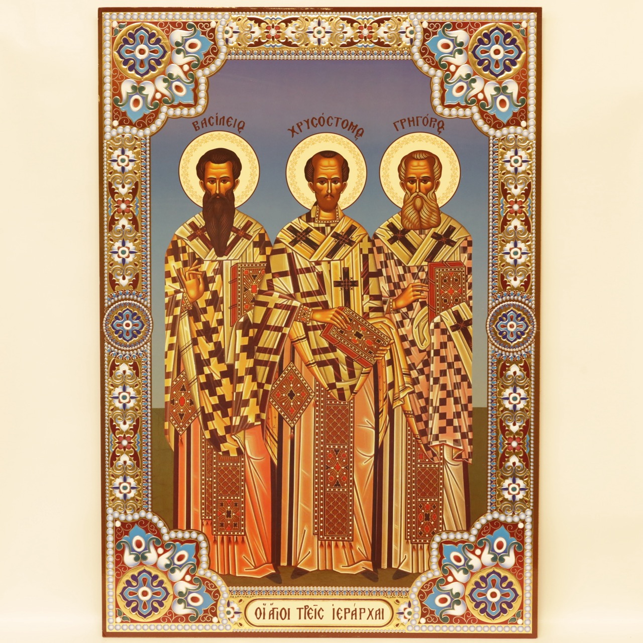 Лик полигр. 50х70, Василий, Иоанн, Григорий (Золото, Конгрев, УФ-лак) купить оптом от производителя