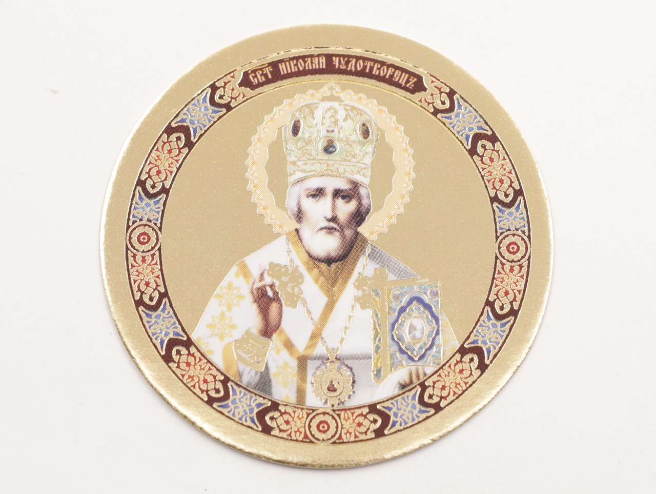 Икона круг D5см, Николай Чудотворец в митре (Бел) купить оптом от производителя