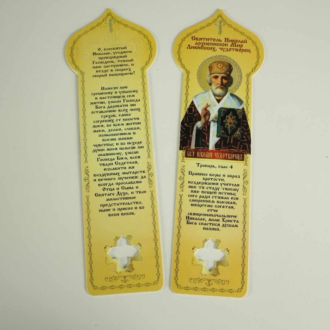 Закладка для книг 170х40 двусторонняя, Николай Чудотворец купить оптом от производителя