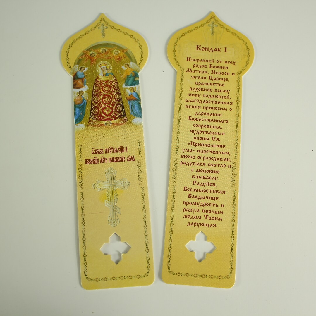 Закладка для книг 170х40 двусторонняя, Прибавление ума, икона Божией матери купить оптом от производителя