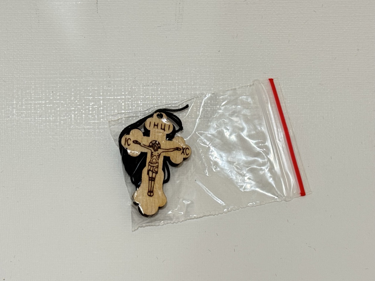 Нательный крестик деревянный на гайтане, фигурный 33x22мм, упак 100шт купить оптом от производителя