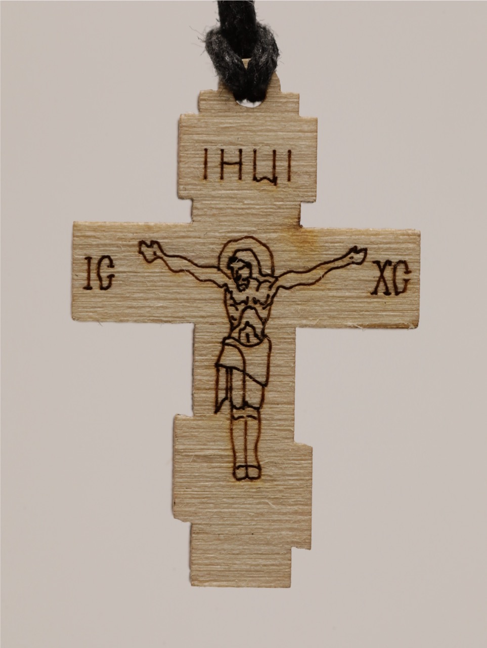 Крестик деревянный (ERM), Спаси и сохрани, 31мм (с гайтаном), прямой купить оптом от производителя