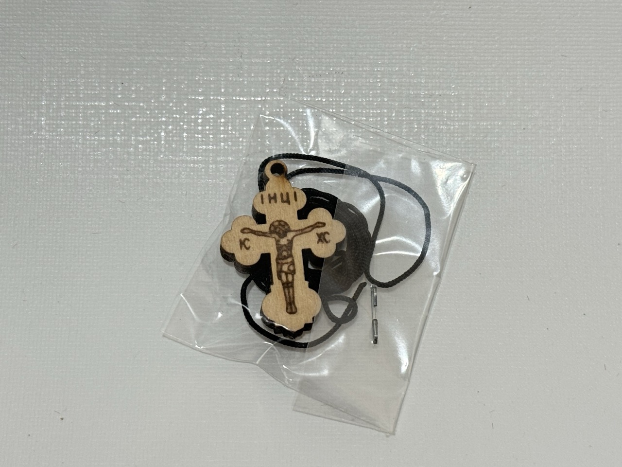 Нательный крестик деревянный на гайтане, фигурный 22x19мм, упак 100шт купить оптом от производителя