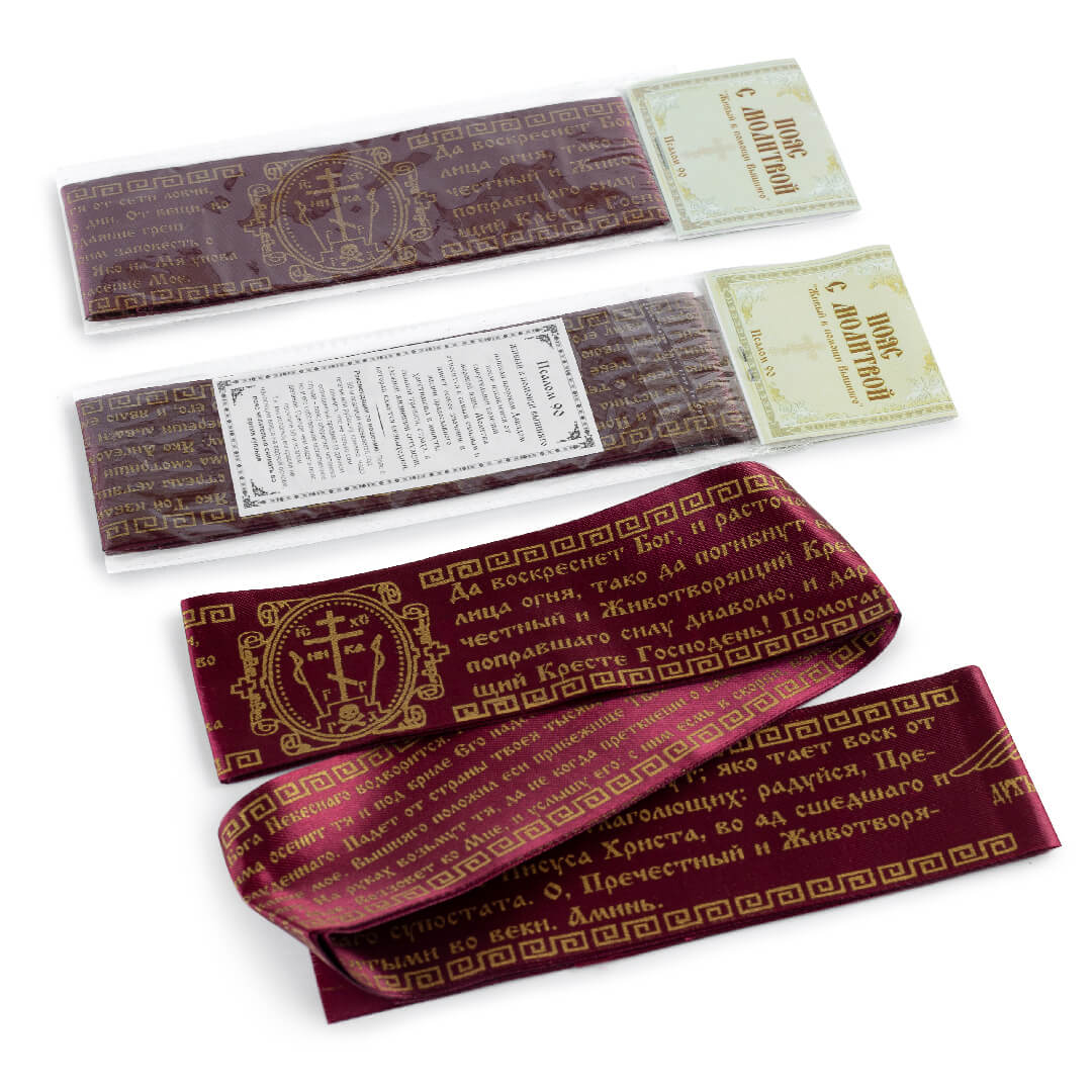 Пояс с молитвой атласный в инд. упаковке, БОРДОВЫЙ купить оптом от производителя