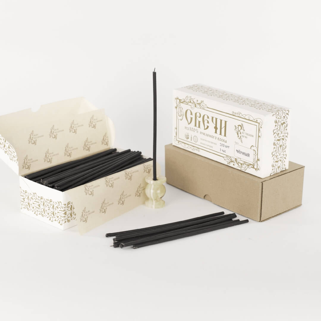 Ростовские свечи ЧАСОВЫЕ (20см, 1ч, 200шт), ЧЕРНЫЕ купить оптом от производителя