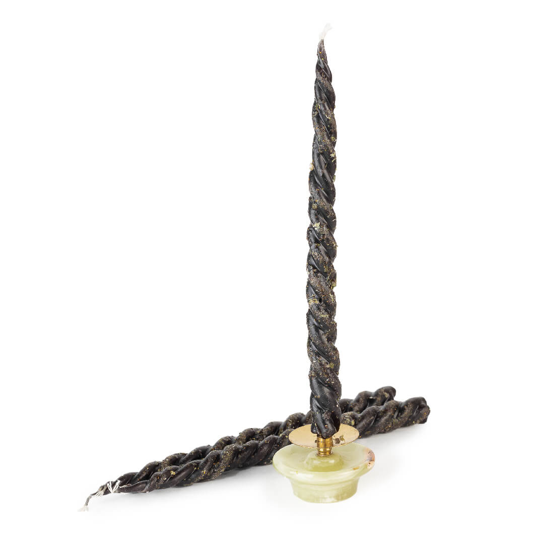 После изготовления свечи проходят специальную процедуру - их скручивают между собой и обмакивают в свечной расплав. Благодаря этому процессу свечи приобретают красивую форму и становятся монолитными, создавая эстетическое удовольствие и добавляя изысканности в любой интерьер. Скрутка из трех конусных свечей №30 в черном цвете с добавлением трав полыни и крапивы - это не только стильный элемент декора, но и функциональный предмет, способный создать уют и расслабление в вашем доме или офисе. Позвольте себе насладиться волшебством ароматов и благотворными свойствами трав с этими уникальными свечами.